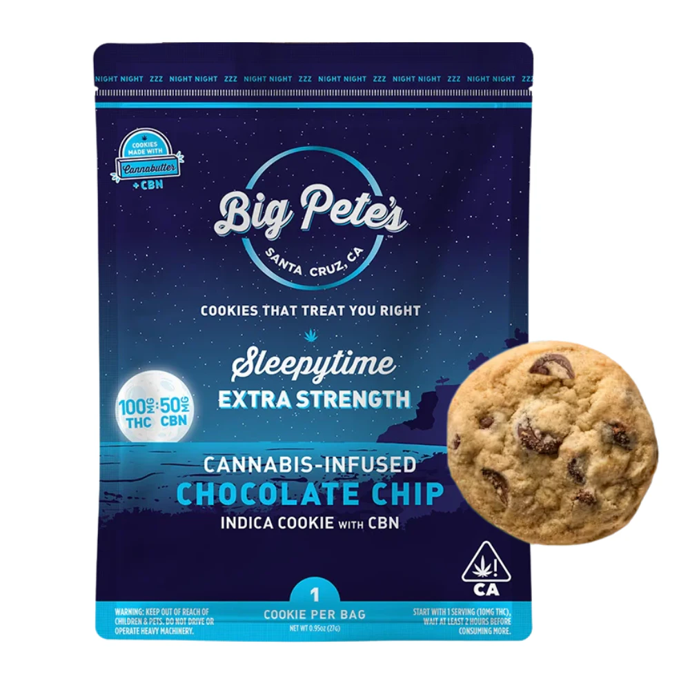 🍪🌙 Experience the perfect bedtime treat with the Sleepytime CBN Cookie by Big Pete’s Treats. This soft, chocolate chip cookie is infused with 10mg THC and 5mg CBN, crafted to promote deep relaxation and restful sleep. Made with premium Santa Cruz-grown cannabis cannabutter and slow-cooked to preserve every cannabinoid, each bite delivers a consistent, long-lasting effect. Enjoy a deliciously calming experience that melts away stress and helps you drift into dreamland.