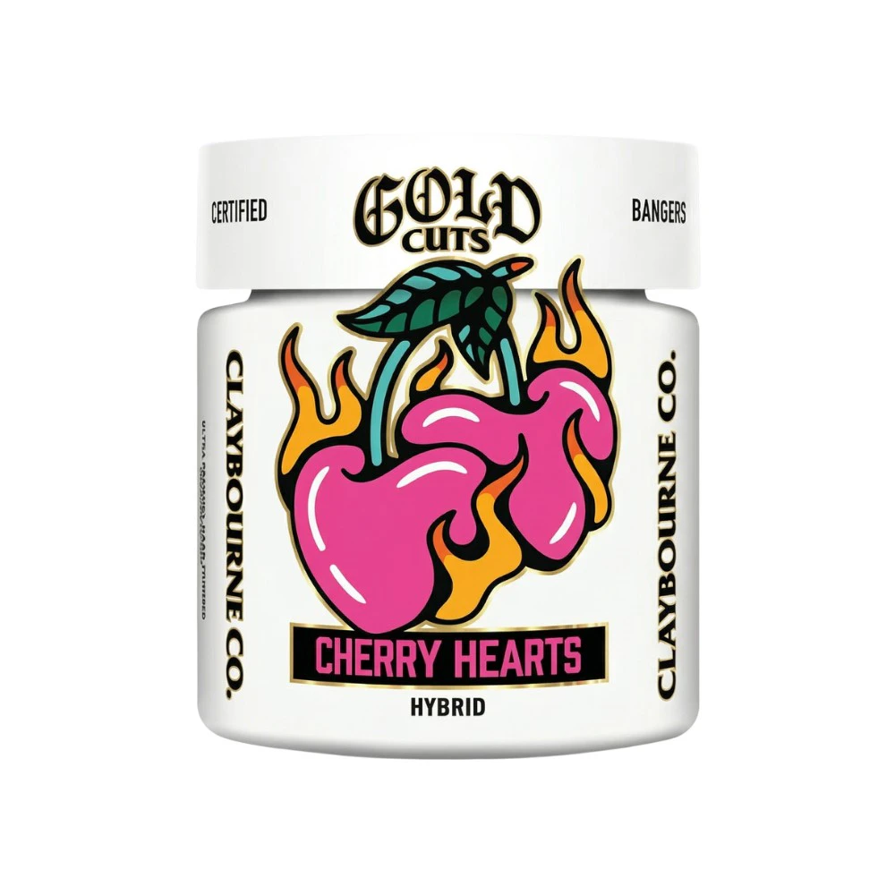 Cherry Hearts hits the sweet spot—literally and figuratively. This standout hybrid from Claybourne Co.’s premium Gold Cuts line blends rich dessert-like flavors with balanced, feel-good effects that shine any time of day. Bursting with bright cherry sweetness, subtle creamy undertones, and a hint of earthy depth, its dense, frost-stacked buds look as beautiful as they taste.