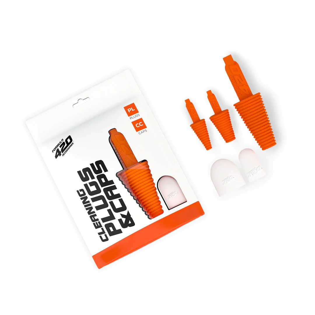 Keep your glassware in top condition with Formula 420 Cleaning Plugs & Caps. Each pack includes three plugs and two caps, providing a secure, leak-free seal to make soaking, scrubbing, and rinsing your pieces fast, easy, and hassle-free. Perfect for cleaning all types of glass, these durable and reusable plugs and caps help protect your gear while ensuring every session stays smooth and enjoyable.