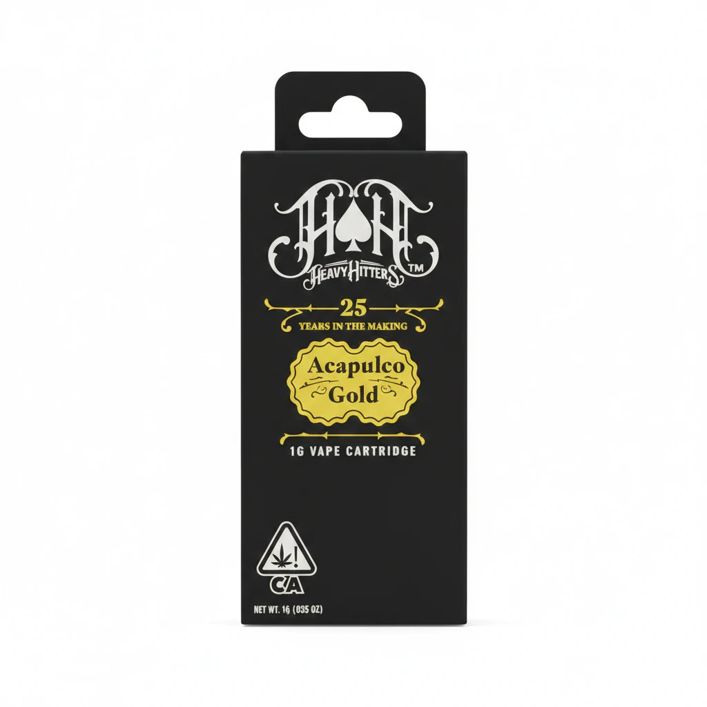 This is a discounted price for the ACAPULCO GOLD 1G cartridge by Heavy Hitters. Please note that all other discounts are excluded from this item. Heavy Hitters is known for its ultra-pure and ultra-potent cannabis products, made with 100% native terpenes and containing up to 95% THC.