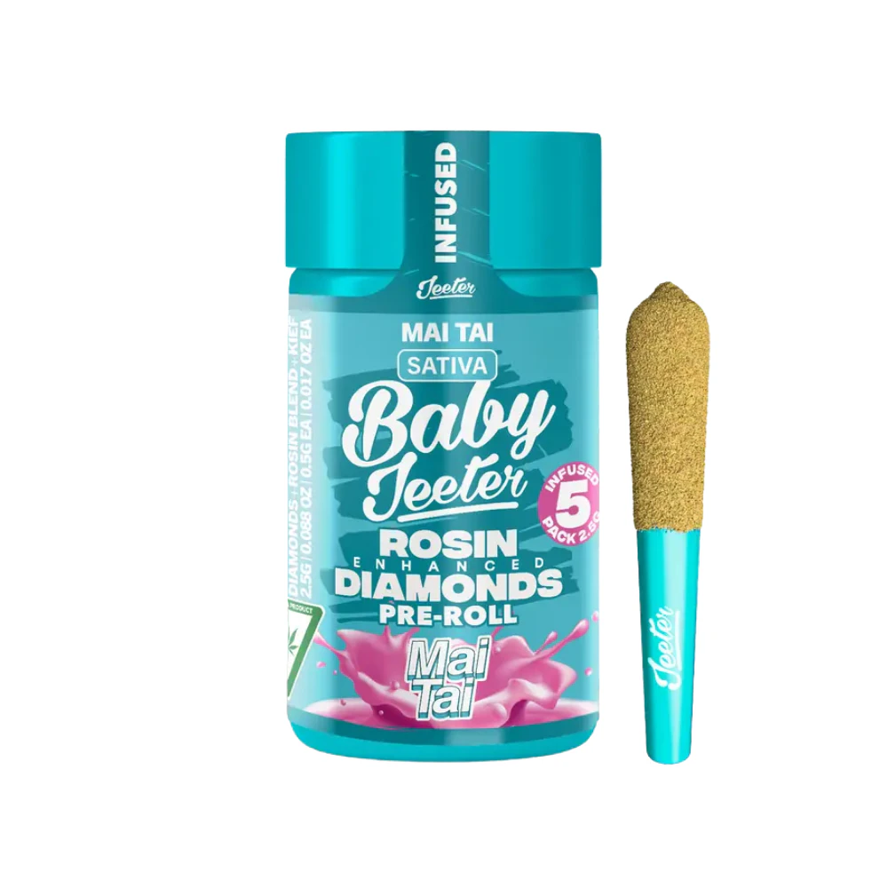 🍹🌺 Mai Tai Rosin Infused (5PK) by Jeeter is a tropical delight in every puff, blending sweet, tangy, and citrusy notes reminiscent of the classic cocktail. Infused with premium rosin, these sativa-leaning pre-rolls deliver a smooth, uplifting experience that energizes the mind and brightens your day. Perfect for creative sessions, social hangs, or simply escaping into a sunny, carefree vibe, each joint is a flavorful mini-vacation.