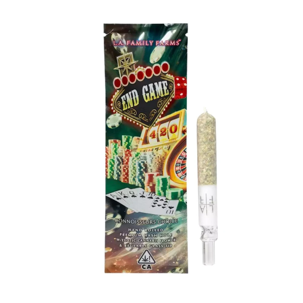 ๐จ๐ฅ Elevate your sessions with the Hash Hole - End Game, a powerful 1.5g preroll by LA Family Farms. Packed with premium flower and infused with hash, this creation delivers smooth, flavorful hits that are as potent as they are satisfying.