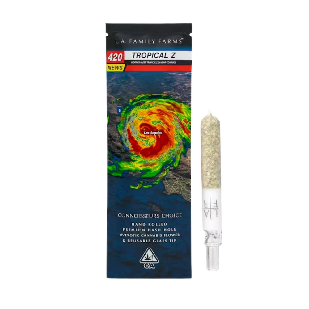 Step into a world of premium indulgence with the Hash Hole - Trop Z X End Game 1.5g from LA Family Farms. Hand-rolled with love, this exotic preroll is packed with 1.25g of Trop Z X End Game flower, enhanced with 0.40g of pure Trop Z X End Game hash rosin for a truly potent experience. The reusable glass tip adds a touch of luxury and sustainability to every puff, ensuring you enjoy every moment with style.