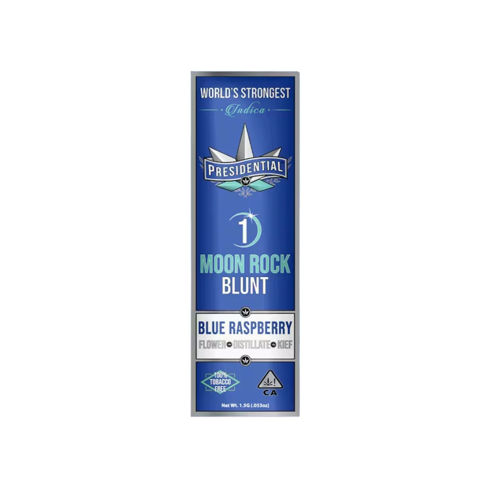 💨✨ Blue Raspberry Moon Rock Blunt 1.5G – Presidential is a premium infused blunt crafted for an ultra-potent and flavorful experience. Made with indoor craft cannabis, each blunt is infused with high-quality liquid live resin using Presidential’s proprietary process—ensuring deep, even infusion from the flower to the stem for a consistently powerful hit.