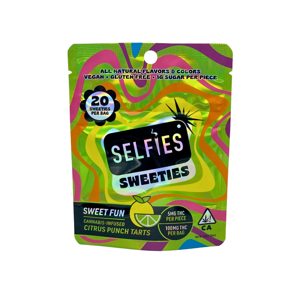 Each tart packs 5mg of THC, with 20 pieces per bag for a total of 100mg. Crafted with all-natural flavors and colors, they’re vegan, gluten-free, and only about 1g of sugar per piece—proof that sweet fun can still be clean.