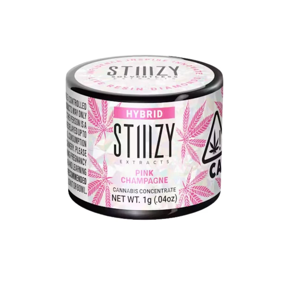 🍇✨ Indulge in the luxurious experience of Pink Champagne Live Resin Diamonds 1g by STIIIZY! This premium concentrate features perfectly sized diamond crystals suspended in terpene-packed sauce, delivering a rich and flavorful experience with every puff. The Pink Champagne strain, an indica-dominant hybrid created by crossing Ken's Granddaddy Purple and Cherry Pie, offers a delicious taste of sweet berries and grapes with a rich kush exhale.