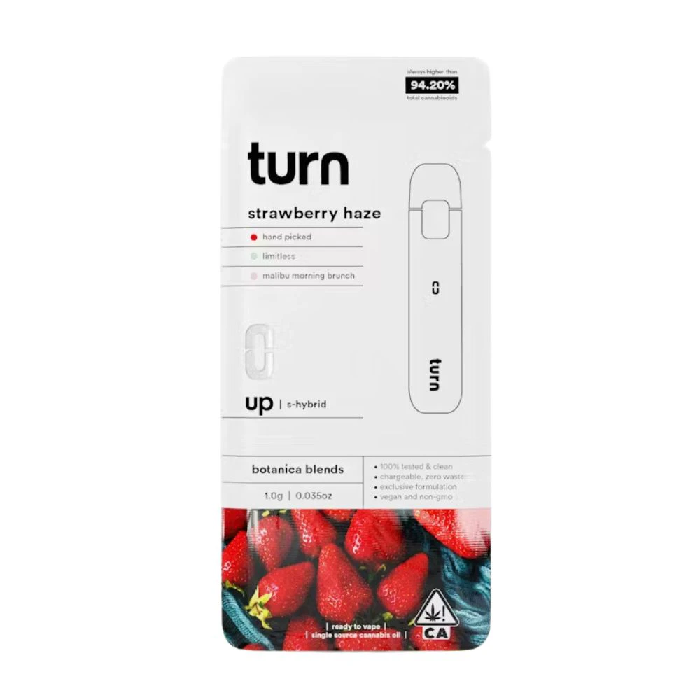 TURN ensures each puff delivers pure California goodness from seed to pen, with potent formulations designed to enhance your experience. Enjoy abundant clouds, consistent pulls, and a 100% live window view for uninterrupted enjoyment. Free from cotton, glue, or heavy metals, TURN pens provide clean, smooth airflow for a satisfying vape. π¨β¨