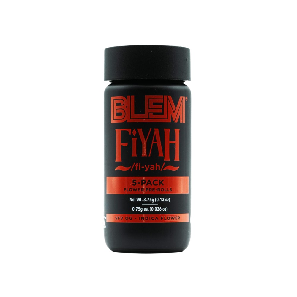🔥🌲 Light up with 5 PACK - FIYAH .75G by BLEM—an elite take on SFV OG, the indica powerhouse that defines the word "fire." This potent OG Kush phenotype hits hard with its signature fusion of kerosene and fuel notes, complemented by earthy lemon undertones, thanks to terpene heavyweights like myrcene, limonene, and caryophyllene. Expect a rapid head and body high that melts into deep relaxation, with sedative effects that may lead to a touch of couch-lock. Don’t settle for less—FIYAH delivers the pure, potent OG experience you deserve. Available for pickup or delivery at From the Earth in Port Hueneme! 🚚🌿