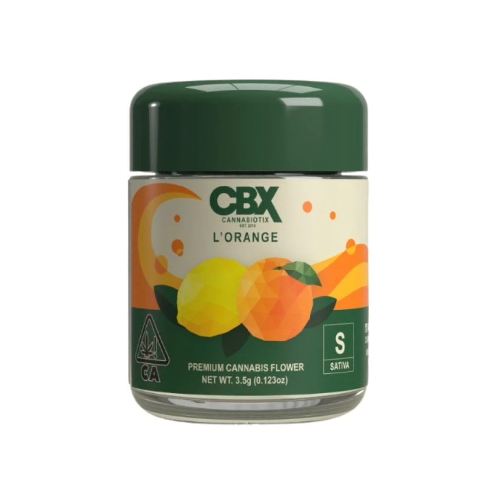 L'Orange 3.5g by Cannabiotix is a sativa strain that offers an energizing, joyful, and creative experience. This unique citrus terpy flower is a cross between the award-winning hybrid Orange Crush and uplifting Lemonburst. Although it takes its time to mature, the wait is well worth it, as this strain is known for its exceptional quality. The buds are covered in sticky, resinous trichomes that leave a nostalgic aroma of sliced oranges in the air, reminiscent of halftime at your childhood soccer games. L'Orange provides a cerebral "happy" high, making it perfect for relieving stress and depression. This non-concentrate flower is available at From The Earth dispensary in Port Hueneme, California, where you can either pick it up or have it conveniently delivered to your doorstep. Experience the uplifting effects of L'Orange 3.5g by Cannabiotix, a strain that embodies the saying "all good things take time." **THIS ITEM IS DISCOUNTED + SOLD WITH AN OPTIONAL SEPARATE NON-CANNABIS MERCH ITEM -- IF YOU WOULD LIKE TO PURCHASE THE CANNABIS WITHOUT THE MERCH ITEM AT FULL PRICE -- PLEASE CONTACT US.**