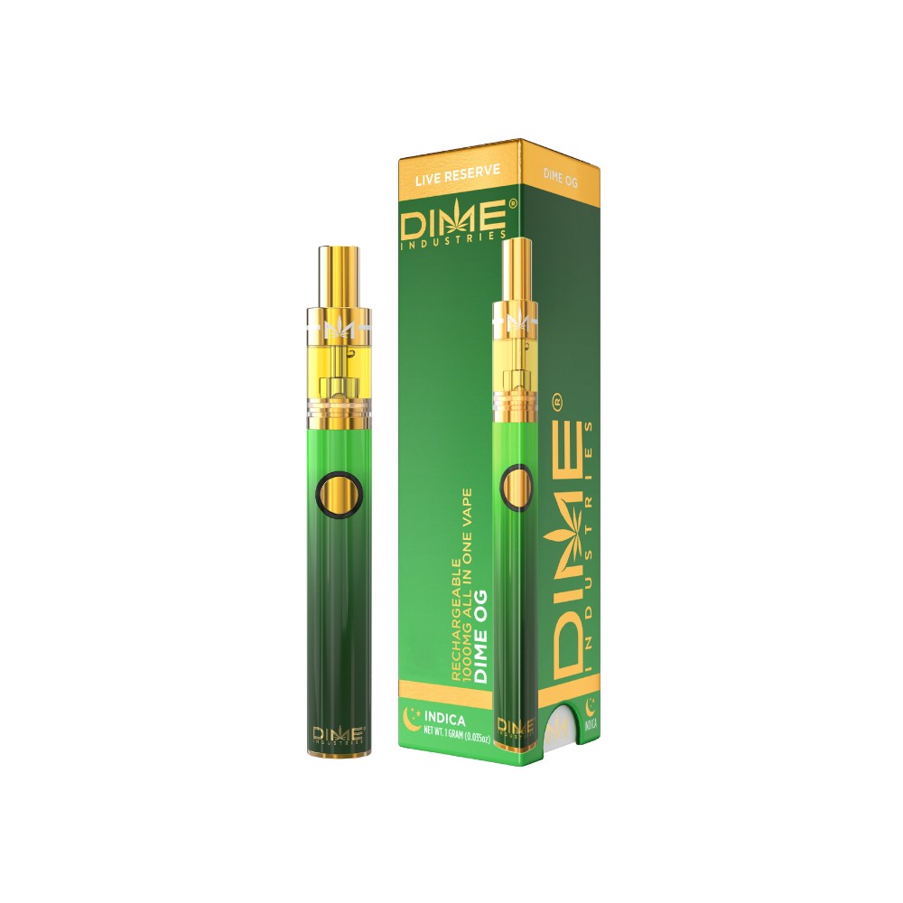 Our own OG strain was created by crossing Jet Fuel, Hardcore OG, and True OG. The flavor profile is meant to remind users of that picture-perfect OG, like the one you could smell through a dime bag. With diesel, lemon, pine, and sweet notes, this will quickly become one of your favorite flavors. Even though Dime OG is a heavy Indica, the Jet Fuel will lift you off into that dream-like state and have you “thinking higher.” Powered by Dime Industries hardware, this device offers 3 heat custom settings (3.9v to 3.1v), pre-heat function, easy air flow, and is USB-C rechargeable. Give your buds a delicious treat backed by the industry's most powerful battery!