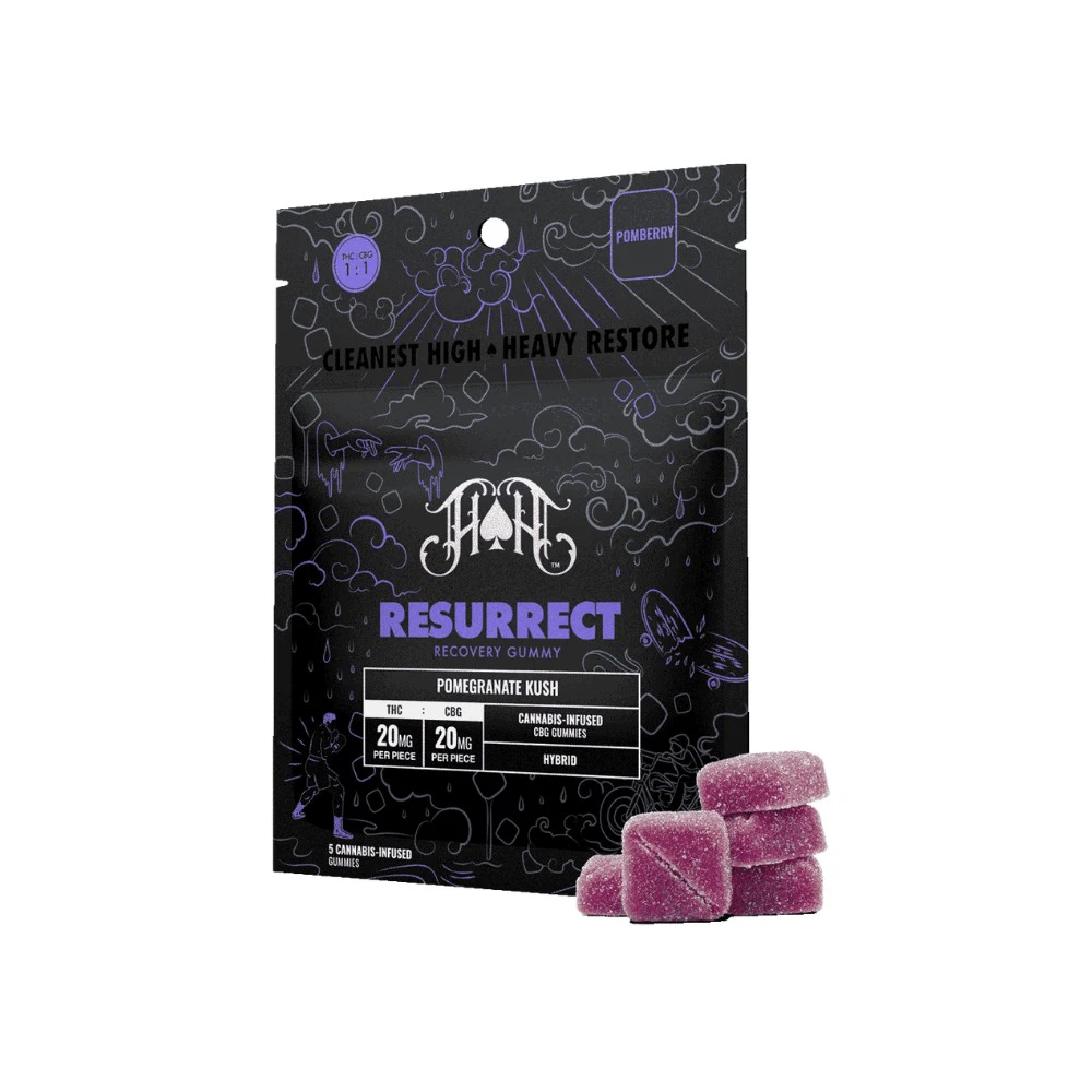 Introducing the Heavy Hitters Resurrect CBG Recovery Gummy: a rare-cannabinoid remedy that tackles aches, pains, and stress. This maxed out gummy features a potent 1:1 ratio of THC and CBG for those in search of a renewed sense of well-being and inner strength. Powered by Pomberry flavors and Pomegranate Kush, these 20mg Hybrid gummies ignite a rally for resilience sure to bring you back to life. Step out of the ring, recoup, and resurrect with Heavy Hitters CBG Gummies.