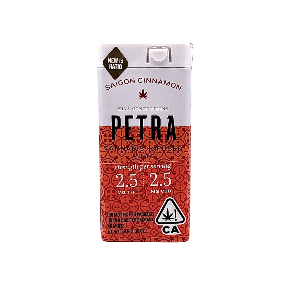 Spice up your wellness routine with Petra’s 1:1 Saigon Cinnamon Mints by Kiva Confections — perfectly balanced microdose edibles infused with 2.5MG THC and 2.5MG CBD per mint. These subtly sweet, warm cinnamon mints offer a flavorful kick while promoting calm focus and gentle relief.
