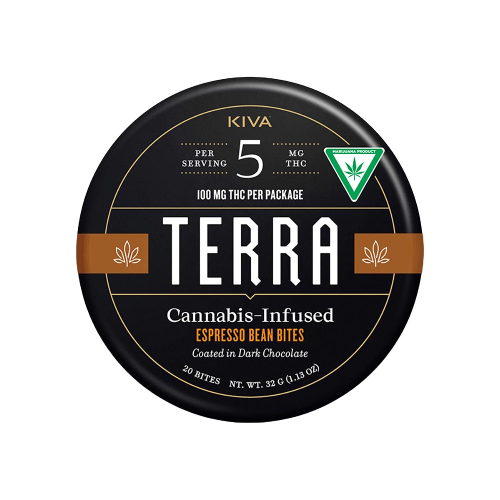 Kiva Confections presents their delectable Terra Bites - Dark Chocolate Espresso Beans, a delightful edible treat that combines the rich flavors of micro-roasted Tanzanian coffee beans with Kiva's signature dark chocolate. Each bite-sized piece contains 5mg of THC, making it incredibly convenient for precise dosing. Encased in a reclosable container, these Terra Bites allow you to savor a little now and save some for later, as each tin holds a generous 120mg of THC. Whether you prefer to pick it up at From The Earth dispensary in Port Hueneme, California or have it conveniently delivered to your doorstep, Kiva Terra Bites are the perfect choice for cannabis enthusiasts seeking a hybrid edible experience. Enjoy the harmonious blend of flavors and effects that Kiva Confections has expertly crafted in this delectable edible.
