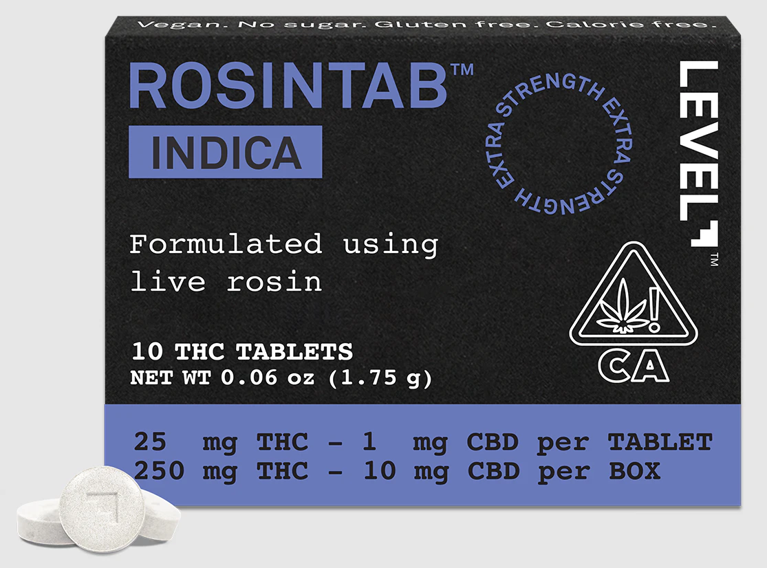 Ready to experience a relaxing high that is truly unique? Then you’re going to love the LEVEL Indica ROSINTAB. Formulated for rosin enthusiasts and those seeking premium cannabis experiences, it’s also ideal for situations where dabbing isn’t possible. Crafted from live rosin, each tablet contains 25mg of premium THC that take effect in 30–90 minutes, with a duration of 3–6 hours. LEVEL tablets are scored to be easily split in half.