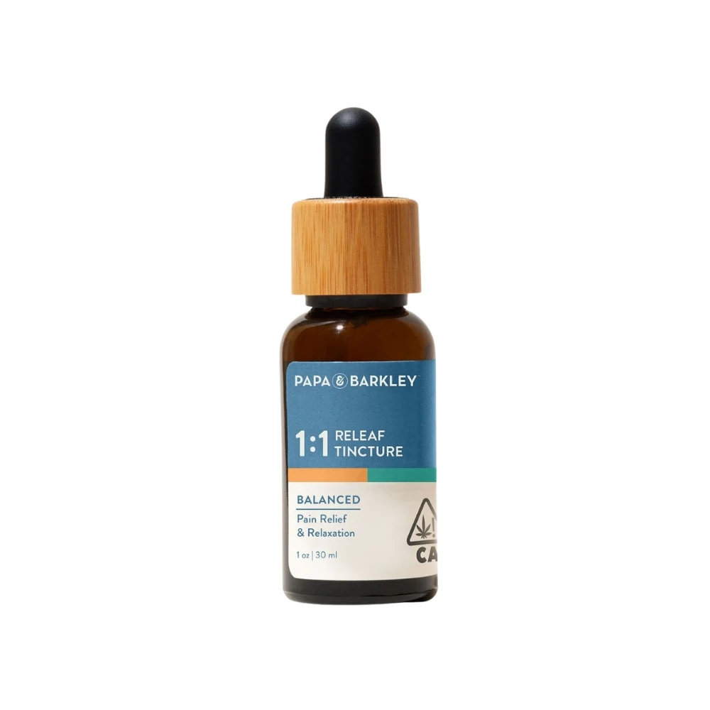 Papa & Barkley presents their 1:1 CBD:THC Releaf Tincture, a powerful solution for those seeking relief from strong afflictions and a sense of mental calmness. This THC-rich formulation has been highly regarded by many consumers for its effectiveness in combating lethargy conditions. With a total cannabinoid content of 900 mg in a 30 ml bottle, or 450 mg in a 15 ml bottle, this tincture offers a discreet and flexible option for holistic relief.