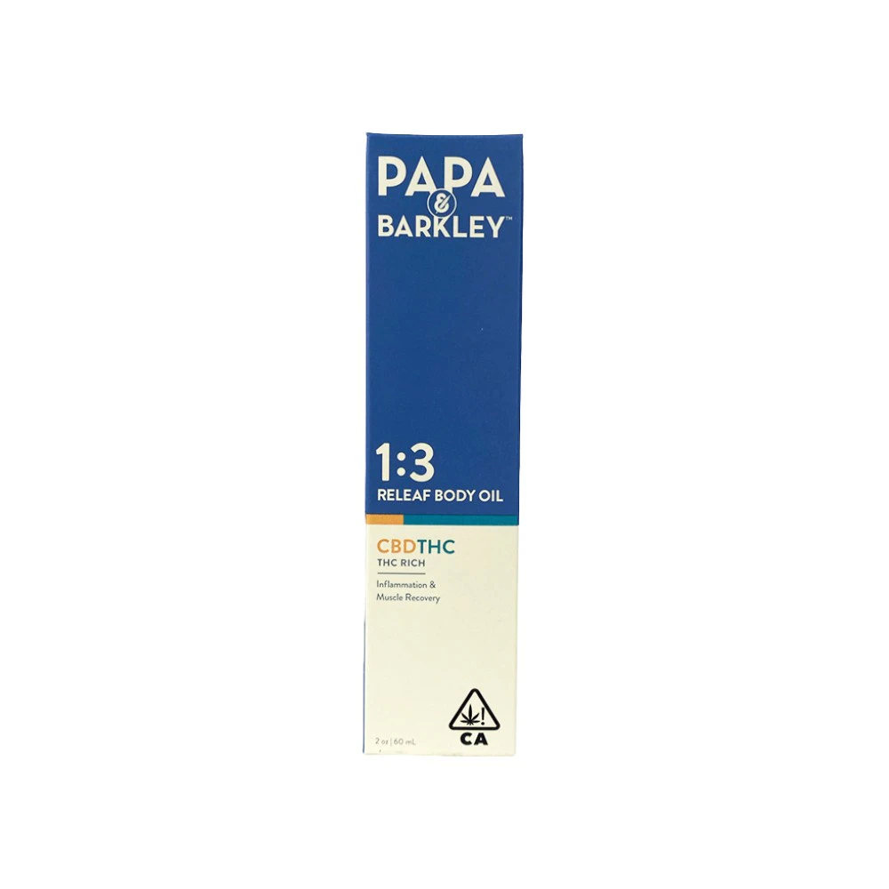 The 1:3 Releaf Body Oil 60ml by Papa & Barkley is a top-quality topical solution designed to provide effective pain relief. This body oil is specially formulated to minimize friction and maximize the exposure to cannabinoids during a massage. With a perfect blend of CBD and THC in a 1:3 ratio, this Releaf Body Oil is an ideal supplement for individuals leading an active and wellness-focused lifestyle.