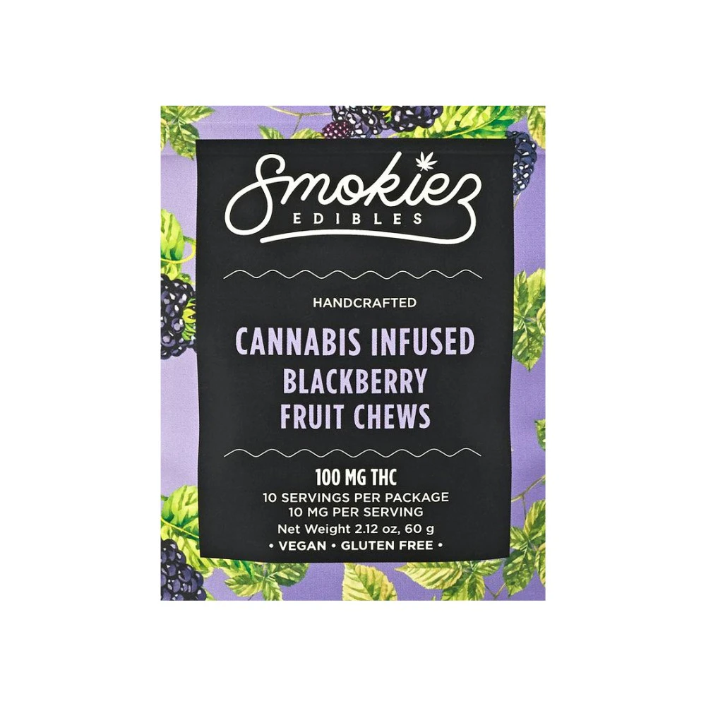 Smokiez presents their delectable Blackberry Fruit Chews, a delightful edible infused with High Clarity Extract for a burst of flavor and THC goodness. Each package contains 10 individually infused pieces, delivering a total of 100mg of THC. These hybrid chews offer a tasty and convenient way to enjoy the benefits of cannabis.