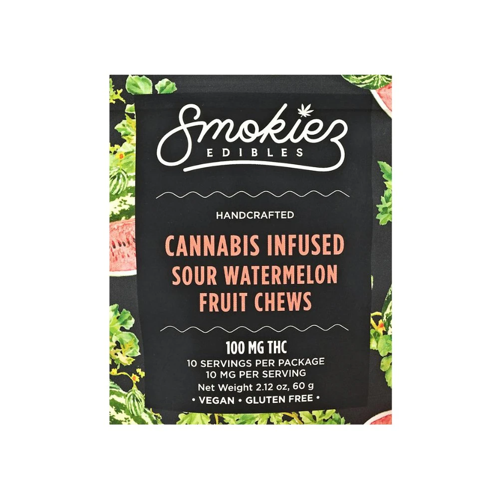 Edible - Sour Watermelon 100mg - Smokiez is a delectable cannabis-infused treat that combines the refreshing taste of watermelon with a tangy sour twist. Made by Smokiez, this edible is a popular choice among cannabis enthusiasts. With a dosage of 100mg, it offers a potent experience for those seeking a stronger effect. Whether you're a seasoned user or new to edibles, this product is a great option.