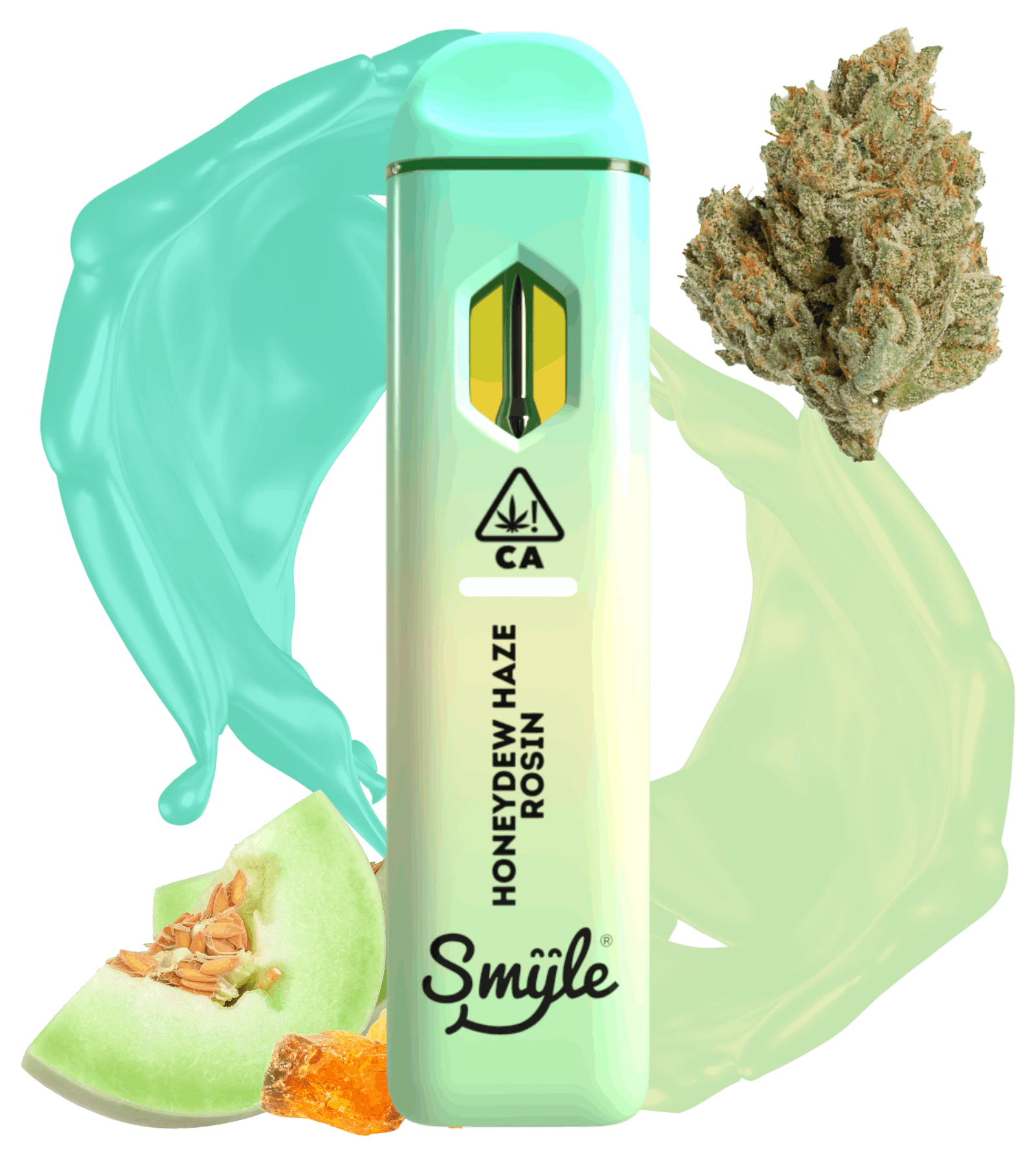 Honeydew Haze by Smyle™ is a harmonious blend of honeydew kush and captivating haze. Every hit is infused with top-notch rosin and packed with tantalizing terpenes that’ll make your taste buds dance like nobody’s watching. Keep calm and vape on – this is one haze you’ll want to get lost in.