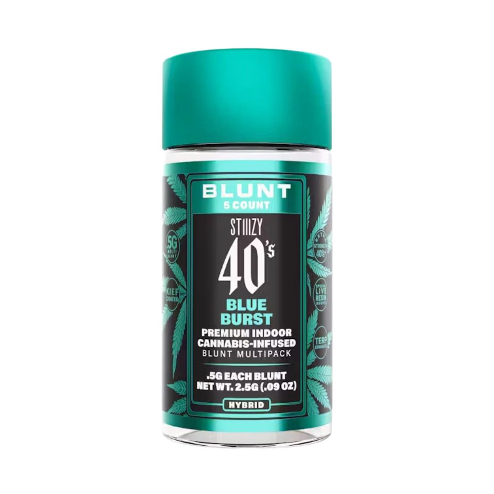 Experience the convenience and quality of STIIIZY's 40's Infused Mini Blunts 5 Pack - Blue Burst .5g. Enjoy the smooth and flavorful smoke of the Blue Burst strain, all in a convenient preroll format. Visit From The Earth dispensary or take advantage of their delivery service to get your hands on this exceptional product. **THIS ITEM IS DISCOUNTED + SOLD WITH AN OPTIONAL SEPARATE NON-CANNABIS MERCH ITEM -- IF YOU WOULD LIKE TO PURCHASE THE CANNABIS WITHOUT THE MERCH ITEM AT FULL PRICE -- PLEASE CONTACT US.**