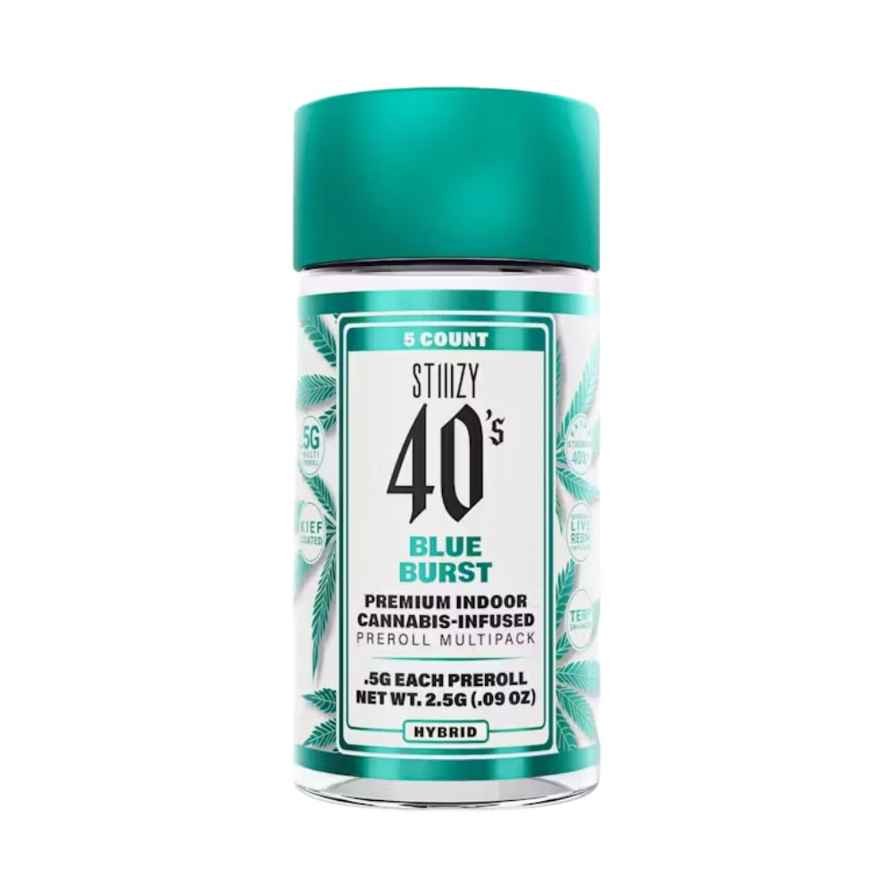 Introducing the 40's Infused 5 Pack - Blue Burst .5g - STIIIZY, a preroll hybrid strain that will take your taste buds on a delightful journey. Crafted by STIIIZY, this preroll is infused with the delicious and potent flavors of blue raspberry, complemented by subtle hints of citrus that linger with every exhale. The Blue Burst 40's offer a balanced and pleasant cerebral high, leaving you feeling relaxed, uplifted, and creative.