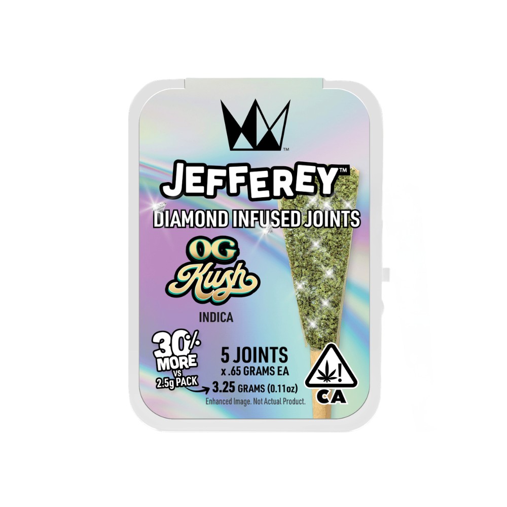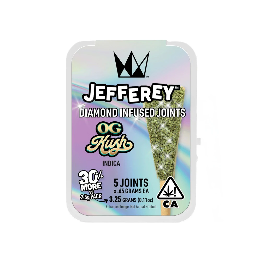 Experience the West Coast Cure difference with this exceptional preroll. Whether you choose to visit the dispensary or opt for delivery, the JEFFEREY Infused 5 Pack - OG Kush .65g - West Coast Cure is a must-try for any cannabis enthusiast seeking a top-tier preroll experience.