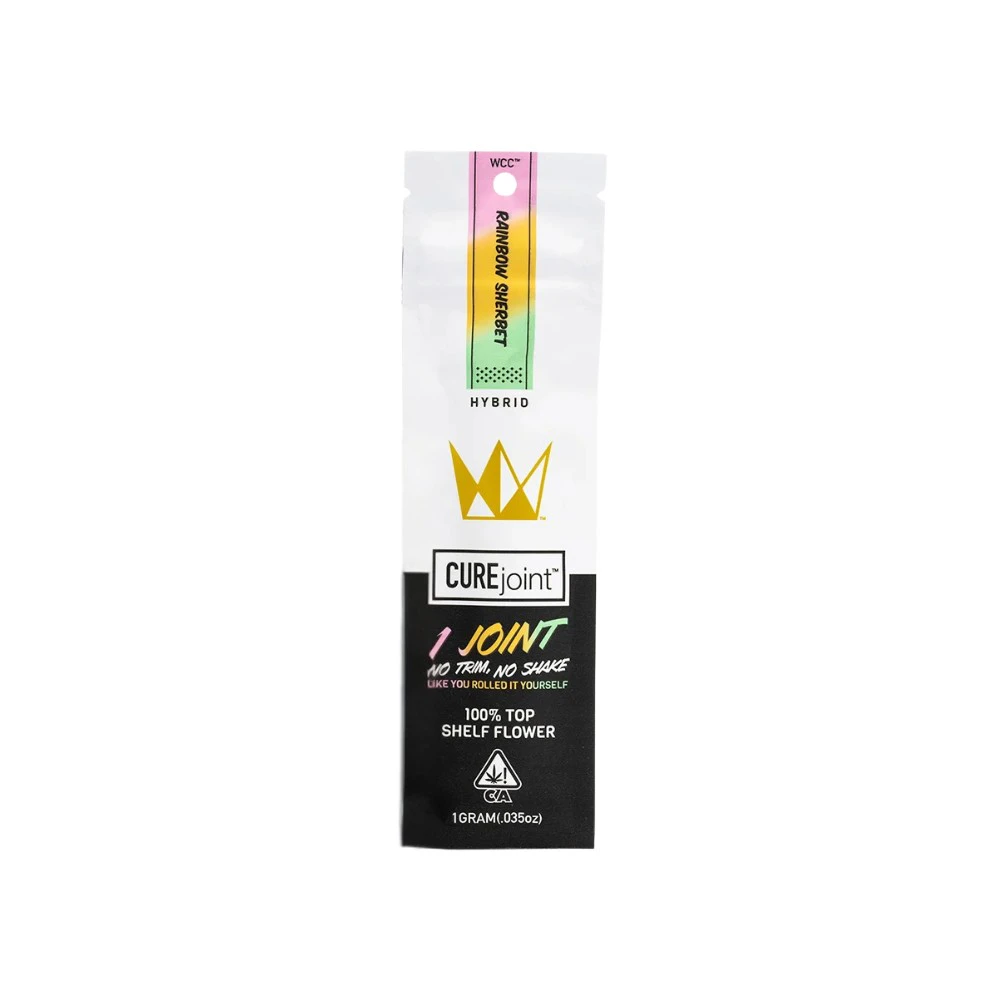 West Coast Cure Cured Joints are meticulously tested to meet California's Bureau of Cannabis Control requirements. You can conveniently pick up this preroll at From The Earth dispensary in Port Hueneme, California, or have it delivered right to your doorstep. Experience the delightful Rainbow Sherbet strain and elevate your smoking experience today.