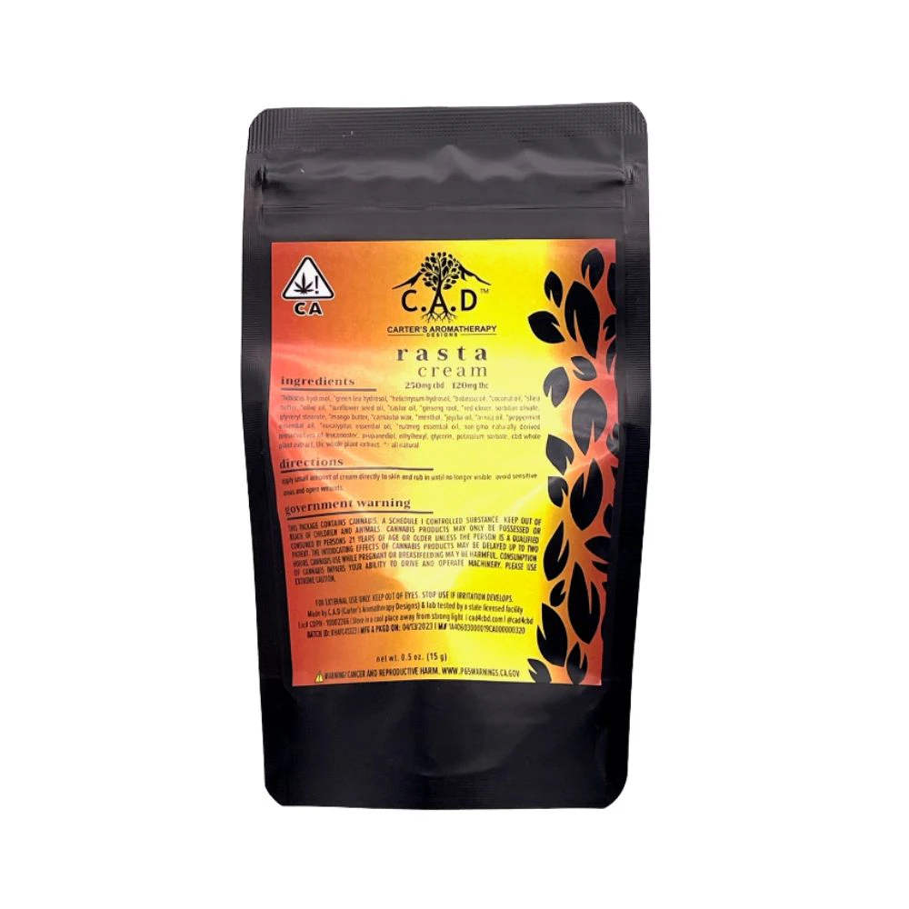 Rasta Cream .5oz by Carter's Aromatherapy Designs is a topical CBD product that offers soothing relief and relaxation. This carefully crafted cream is part of the CARTER'S AROMATHERAPY DESIGNS line, known for its high-quality CBD-infused products.