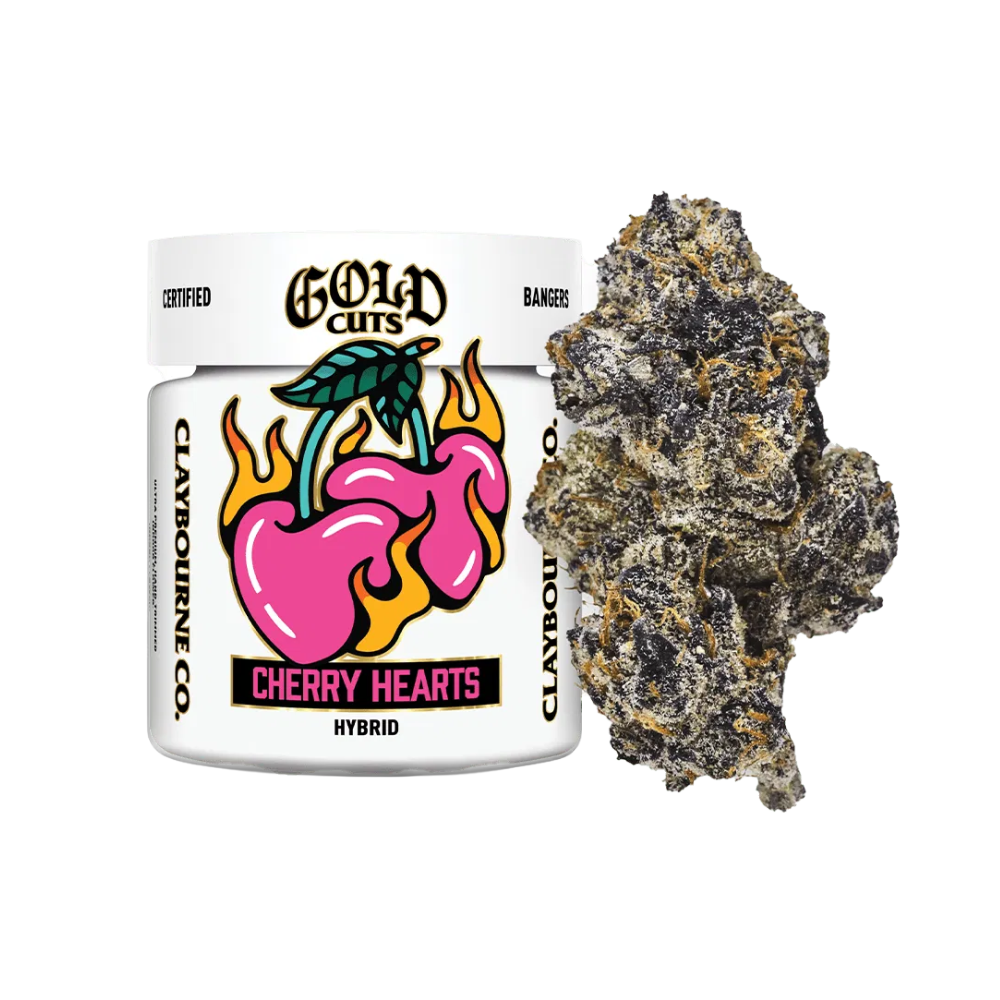 Cherry Hearts hits the sweet spot—literally and figuratively. This standout hybrid from Claybourne Co.’s premium Gold Cuts line blends rich dessert-like flavors with balanced, feel-good effects that shine any time of day. Bursting with bright cherry sweetness, subtle creamy undertones, and a hint of earthy depth, its dense, frost-stacked buds look as beautiful as they taste.