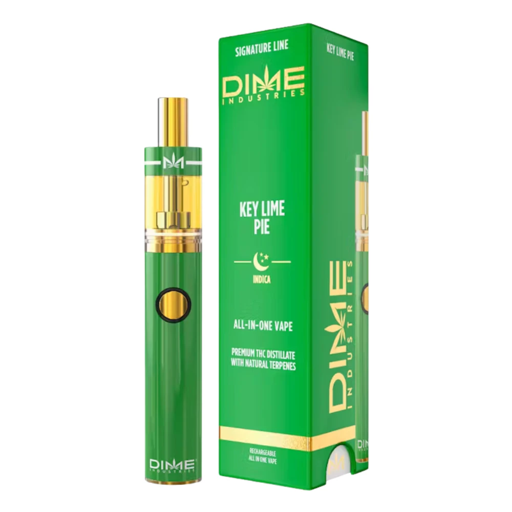 Introducing the Key Lime Pie Disposable 1g by Dime Industries, an exceptional indica strain that combines the legendary GSC with Lime OG. This strain is renowned for its potent indica effects. On the inhale, savor the flavors of lime candy, mint, and spice, while the exhale reveals earthy and chocolatey undertones. Enjoy a tangy treat that's both delicious and relaxing.