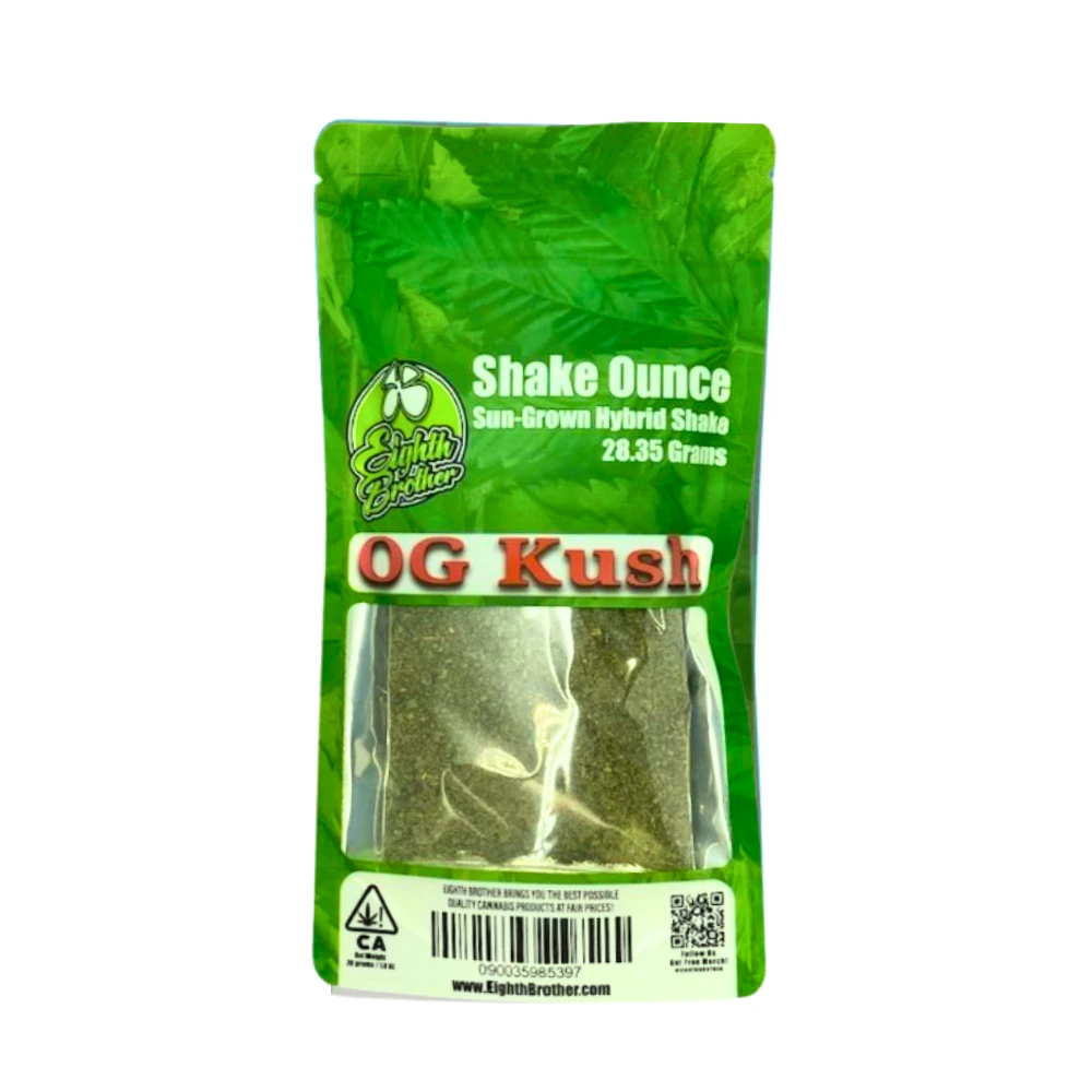 🌿🔥 OG Kush Shake 28G by Eighth Brother delivers the bold, classic effects of this iconic strain in a full ounce of value-packed shake. Sourced from the trim and small buds of premium OG Kush flower, it’s perfect for rolling, packing, or infusing—without compromising on quality.