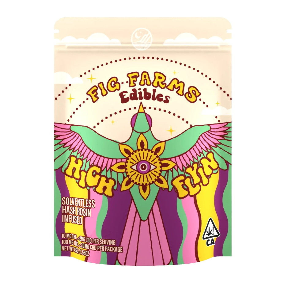 FIG FARMS presents their Sour Watermelon Gummies, a delightful edible treat that combines the refreshing taste of watermelon with a tangy sour sugar coating. Each gummy is infused with 100mg of solventless hash rosin, providing a potent and enjoyable experience. The ingredients used in these gummies are of the highest quality, including organic tapioca syrup, pure cane sugar, pectin, natural flavors, citric acid, natural colors, and sodium citrate. These edibles are a perfect choice for those who prefer a sweet and sour twist to their cannabis consumption. You can conveniently pick up these Sour Watermelon Gummies at the From The Earth dispensary located in Santa Ana, California. Alternatively, if you prefer the comfort of your own home, you can easily arrange for a delivery. Please note that this product is an edible and does not fall under the categories of Flower, Preroll, Cartridge, or Extract, hence the term 'strain' is not applicable. Enjoy the unique taste and potent effects of FIG FARMS' Sour Watermelon Gummies.