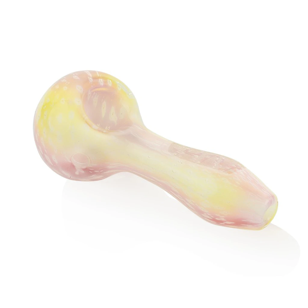 Take a nostalgic trip back to carefree days with the White Bubble Trap Spoon by GRAV. This stunning glass piece captures the essence of blowing bubbles and chasing them through the yard. Crafted with layers of clear and colored glass, it ensures that the bubbles will never escape, adding both weight and durability to the spoon. Featuring an inverted ash catching mouthpiece and a generously sized bowl, this spoon is truly a dream come true.