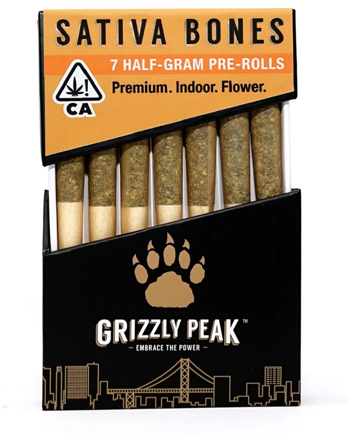 Get ready to experience the ultimate SATIVA BONE prerolls by GRIZZLY PEAK. Each pack contains 7 half-gram pre-rolls of top-shelf flower, ensuring you have the perfect dose anytime, anywhere. These premium indoor prerolls are magnetically sealed in a heavy-duty, re-usable slider box, guaranteeing freshness and convenience.