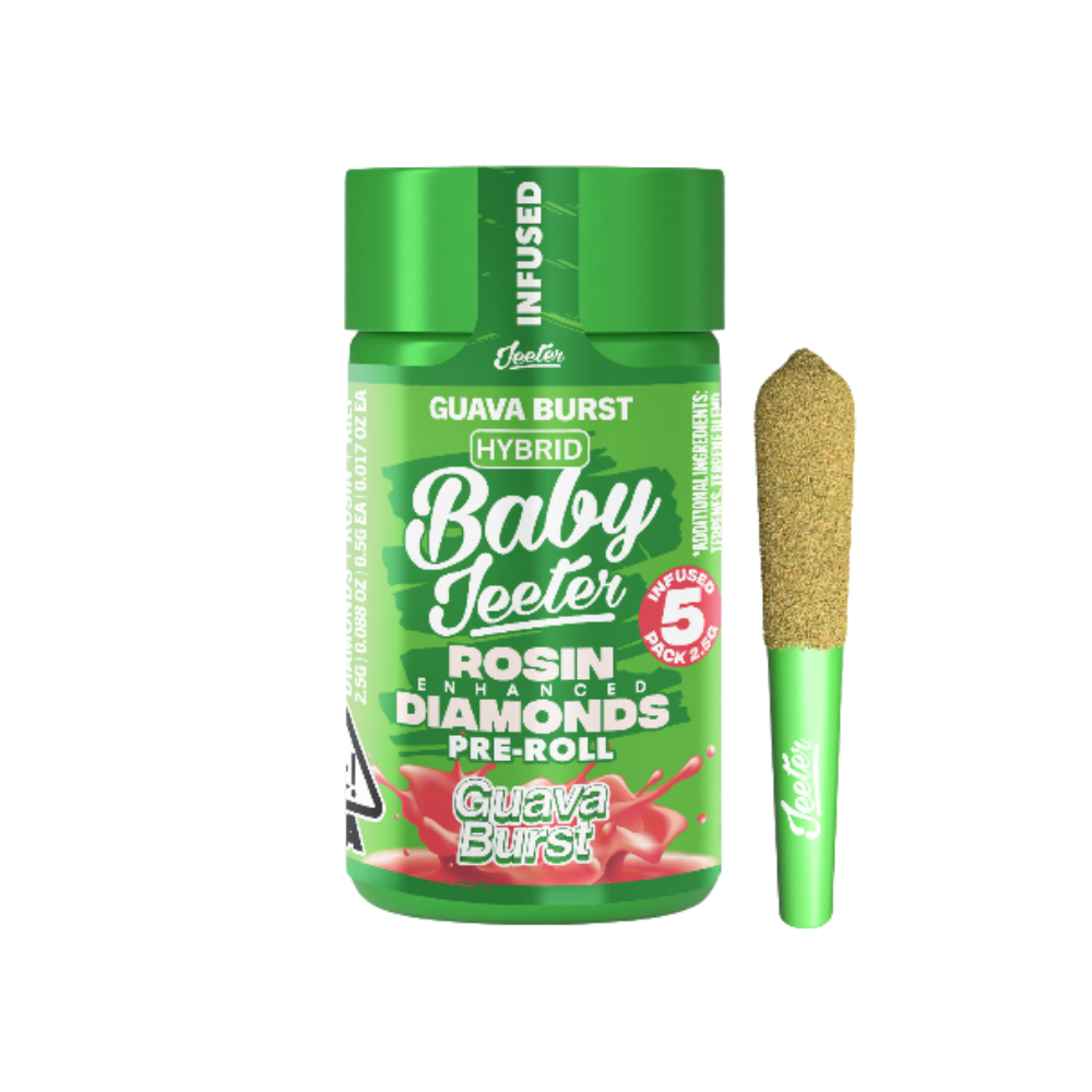 🍈💥✨ Introducing Guava Burst Infused Baby Jeeter (5PK) by Jeeter! Elevate your session with these tropical, flavor-packed infused mini joints—each pack includes five perfectly rolled joints totaling 2.5 grams, crafted for a smooth and potent experience.