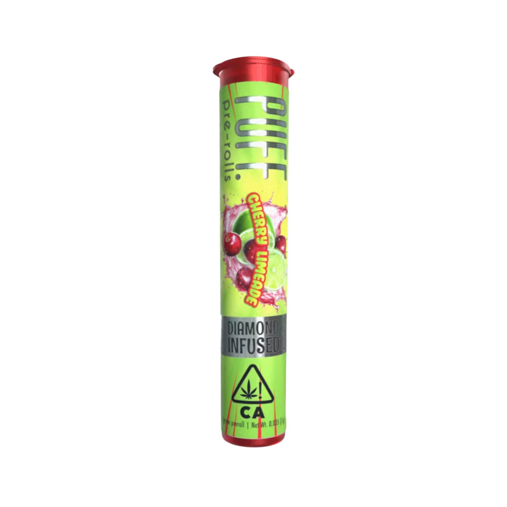 🍒🍋 Introducing Cherry Limeade Diamond Infused Preroll 1G - Puff! Refresh your senses with this mouthwatering, diamond-infused preroll that combines the sweet, tart flavors of cherry and lime with the powerful punch of THC diamonds. Cherry Limeade’s fruity and zesty profile is complemented by the sparkling, crystal-clear diamonds, delivering a smooth, flavorful smoke with a high that hits hard and fast. Each 1-gram preroll is packed with premium flower and infused with high-quality diamonds, providing a potent and long-lasting effect that’s perfect for a creative boost or a relaxing escape. Whether you’re unwinding solo or sharing with friends, this preroll offers a top-tier experience. Ready to enjoy on-the-go, the Cherry Limeade Diamond Infused Preroll is your new favorite way to elevate your day. Available now at From the Earth in Santa Ana for pickup, or conveniently delivered to your doorstep. 🍒🍋