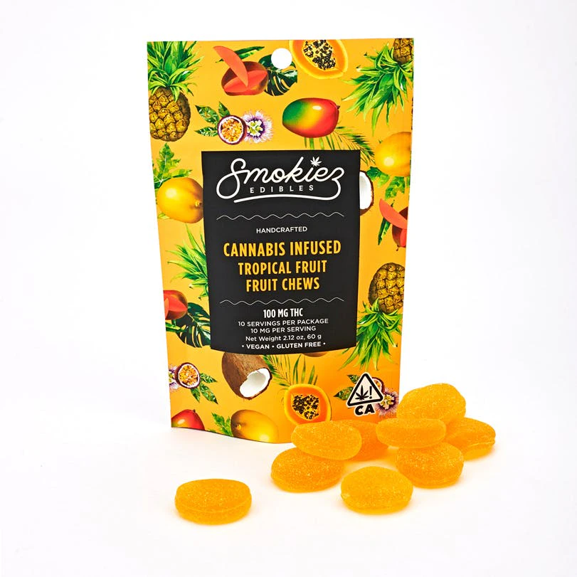 Smokiez 10-piece Tropical Fruit Chews are a delicious way to medicate! These fresh and fruity chews are blended with High Clarity Extract to create flavorful THC delicacy. Each package contains 10 pieces, individually infused with 10 mg of THC for a total of 100 mg per container.