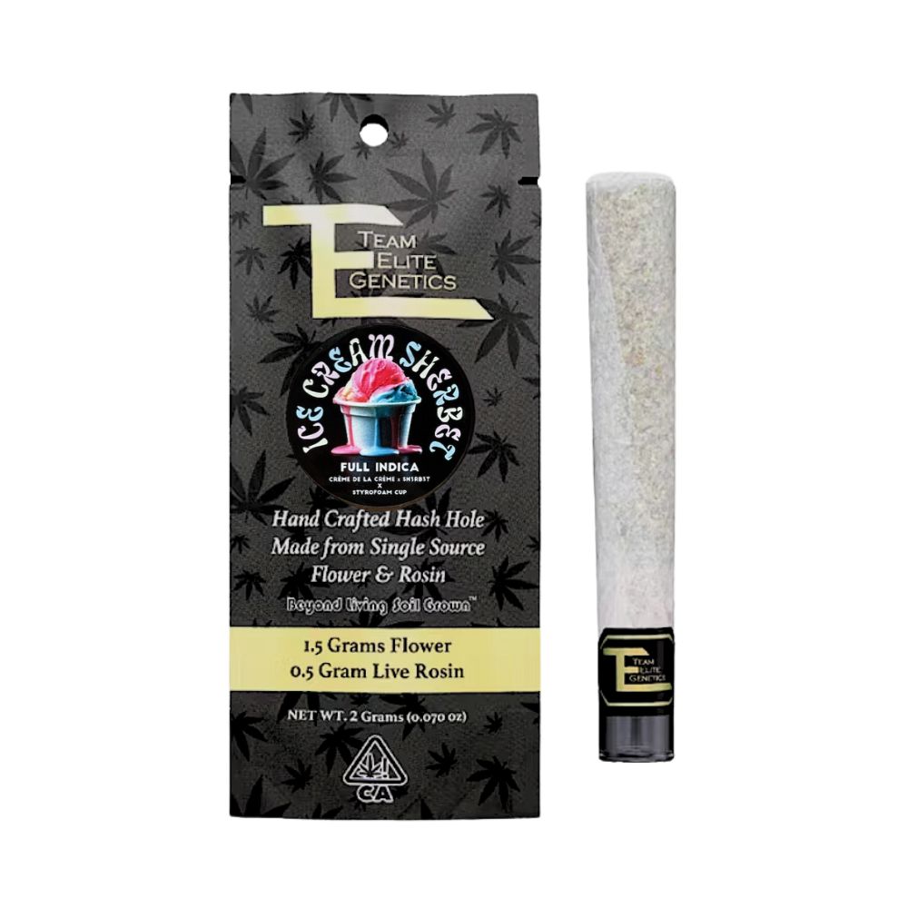 🍦✨ Dive into the rich flavors of Ice Cream Sherbet - Hash Hole 2g by Team Elite Genetics! This full indica strain combines 1.5 grams of premium flower with 0.5 grams of high-quality hash rosin for a top-notch experience.