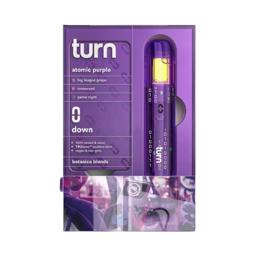 TURN Botanica Blends ensures every pen is packed with the cleanest California-grown oil, crafted from seed to pen. Vegan, non-GMO, and lab-tested, Atomic Purple is formulated with natural botanical terpenes and precision-selected potency for a premium, flavorful experience.