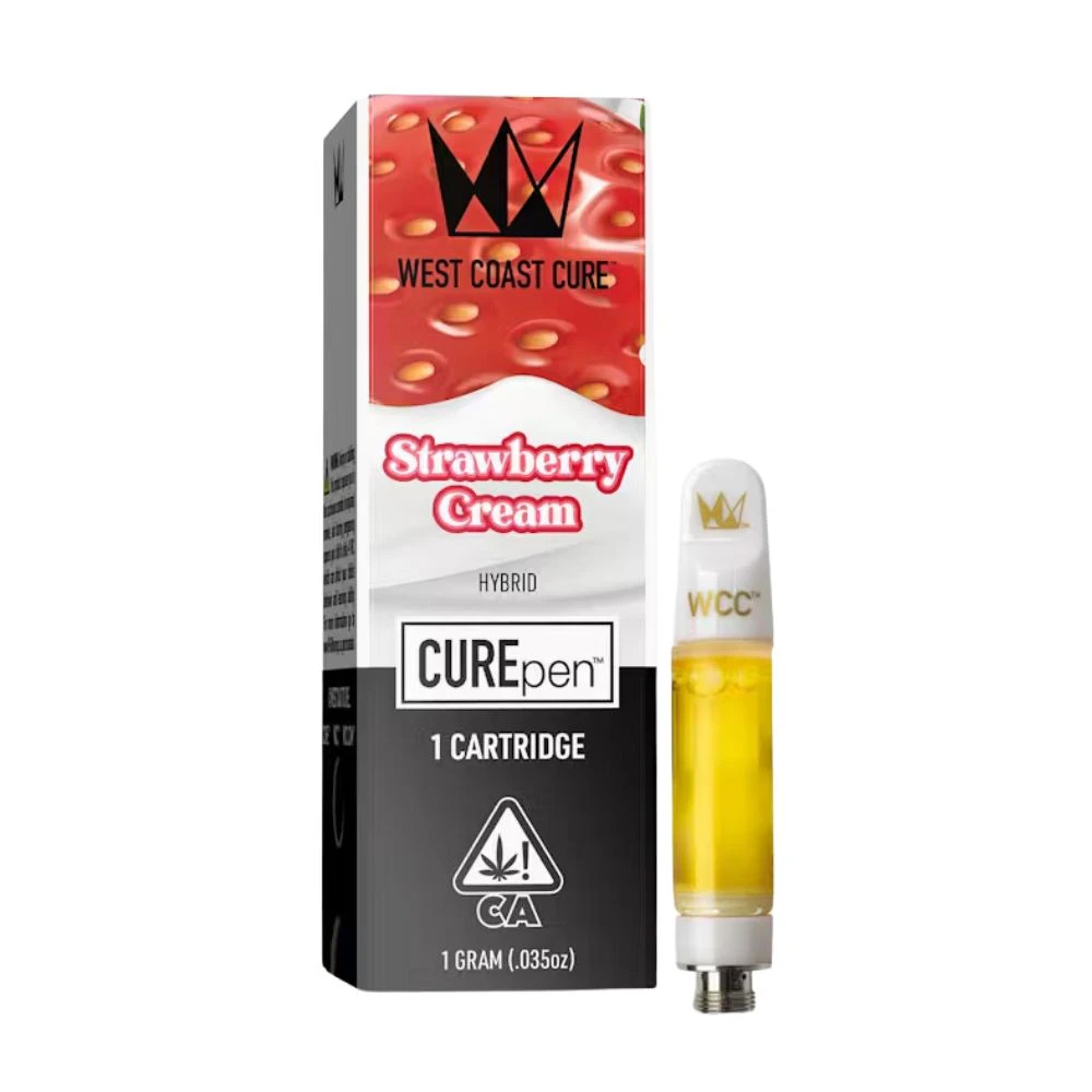 Experience the summer vibes with the Strawberry Cream CUREpen Cartridge by West Coast Cure. This cartridge is filled with 1 gram of high-quality hybrid cannabis oil concentrate. The vape delivers a creamy and sweet hit of berries, cream, and petrol, providing a unique and enjoyable flavor profile. This hybrid strain is perfect for those seeking creative energy and motivation, making it an ideal choice for long daylight hours. The Strawberry Cream CUREpen Cartridge is a product of West Coast Cure, a renowned brand known for its commitment to quality and potency. You can conveniently pick up this cartridge at the From The Earth dispensary located in Santa Ana, California. Alternatively, you can also opt for delivery if you prefer the convenience of receiving your products at your doorstep. Experience the unique blend of flavors and effects of this hybrid strain today.
