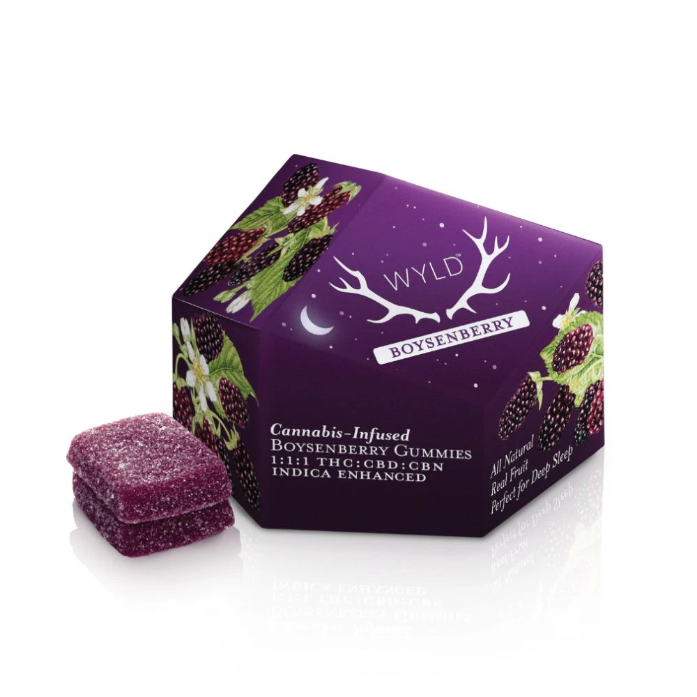 Hit the snooze button. Boysenberry THC:CBD:CBN gummies are perfect for deep sleep. CBD helps the body relax, while CBN can provide a restorative rest for the mind. When combined with THC, Wyld's Boysenberry gummy activates the Entourage Effect to set the landscape for a relaxing, restorative sleep.