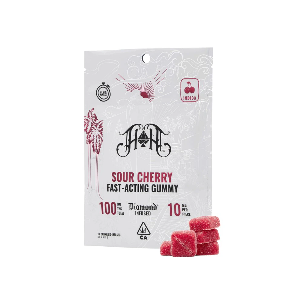 Diamond Infused - Indica Sour Cherry 100mg - Heavy Hitters is a potent edible that combines the benefits of a heavy-hitting Indica strain with the delicious flavor of sour cherries. Each package contains 100mg of THC, making it a perfect choice for experienced users seeking a strong and long-lasting effect.