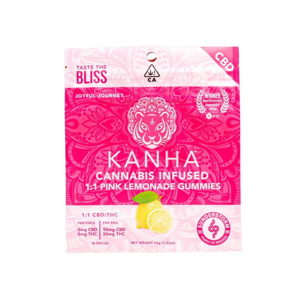 1:1 Pink Lemonade - Kanha gummies are an edible delight infused with the perfect balance of CBD and THC. Made with all-natural ingredients, coloring, and flavoring, these gummies offer a consistent and safe experience. Each gummy contains 5mg of CBD and 5mg of THC, providing a sour yet sweet taste that will tantalize your taste buds.