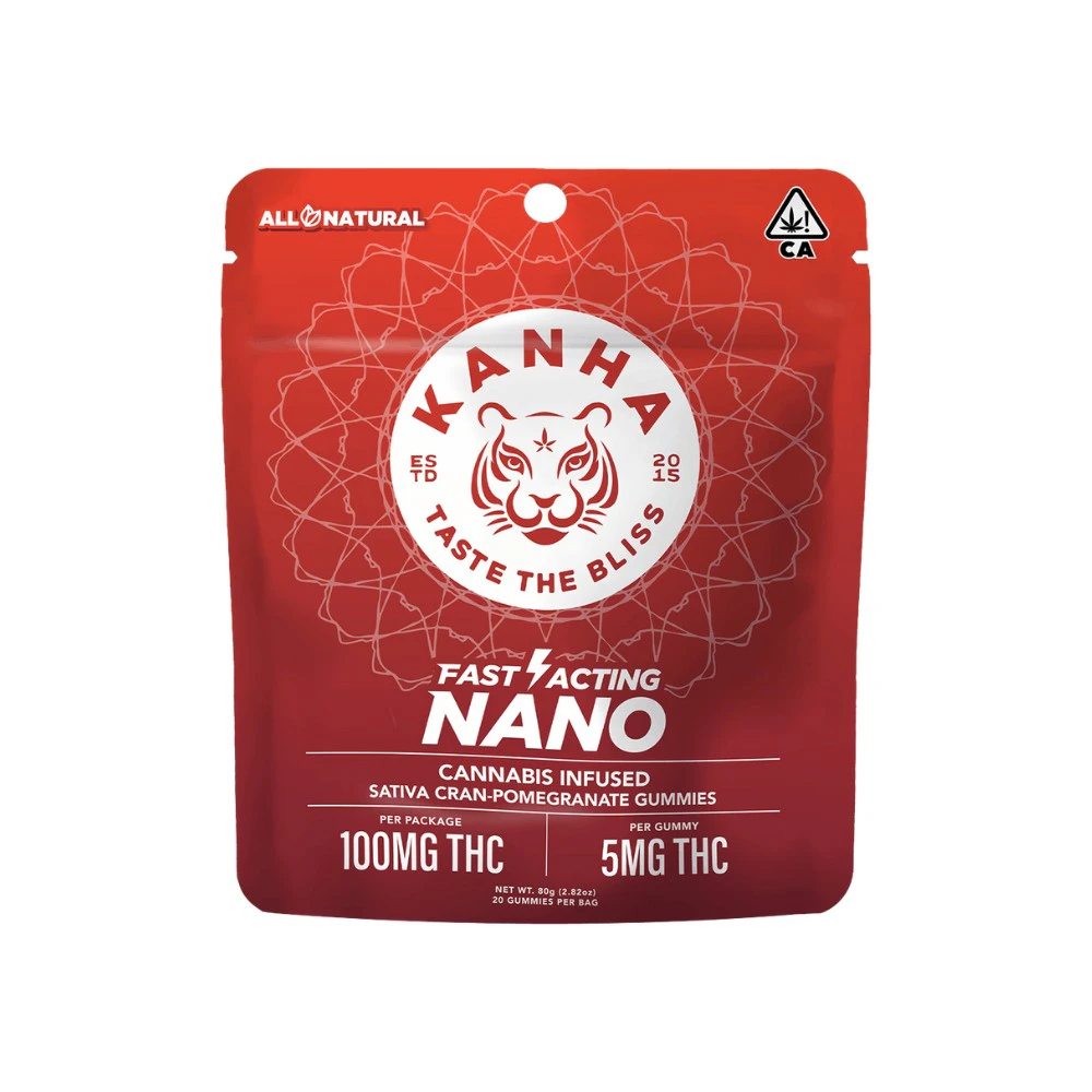 Kanha Nano presents their NANO - SATIVA - CRAN-POMEGRANATE 100MG - KANHA gummies, an edible delight that revolutionizes the industry with its fast-acting formula. These award-winning gummies are infused with cannabinoid particles smaller than a wavelength of light, ensuring a rapid and efficient absorption into your bloodstream. Experience the tangy and sweet flavors of Cran-Pomegranate Punch, enhanced with sativa terpenes that promote a stimulating and uplifting state of mind. With each gummy containing only 5mg of THC, these gummies are perfect for micro-dosing. The onset time of 10-20 minutes on average allows for a quick and controlled experience. You can conveniently pick up this edible at From The Earth dispensary in Port Hueneme, California, or have it delivered right to your doorstep. Elevate your cannabis experience with Kanha Nano's NANO - SATIVA - CRAN-POMEGRANATE 100MG - KANHA gummies.