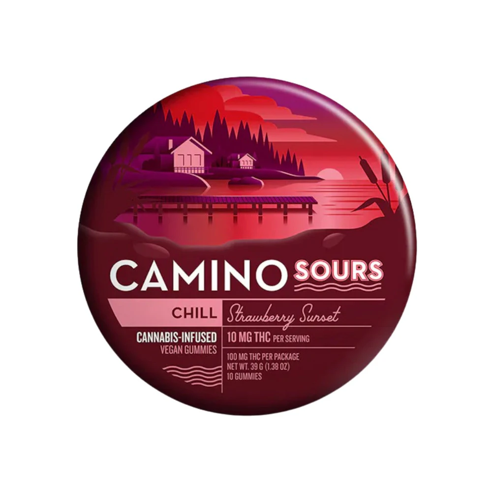 You can conveniently pick up this edible at From The Earth dispensary in Port Hueneme, California, or have it delivered right to your doorstep. Whether you're seeking a moment of relaxation or a gentle escape, Camino Sours - Strawberry Sunset 100mg is the perfect choice. **THIS ITEM IS DISCOUNTED + SOLD WITH AN OPTIONAL SEPARATE NON-CANNABIS MERCH ITEM -- IF YOU WOULD LIKE TO PURCHASE THE CANNABIS WITHOUT THE MERCH ITEM AT FULL PRICE -- PLEASE CONTACT US.**