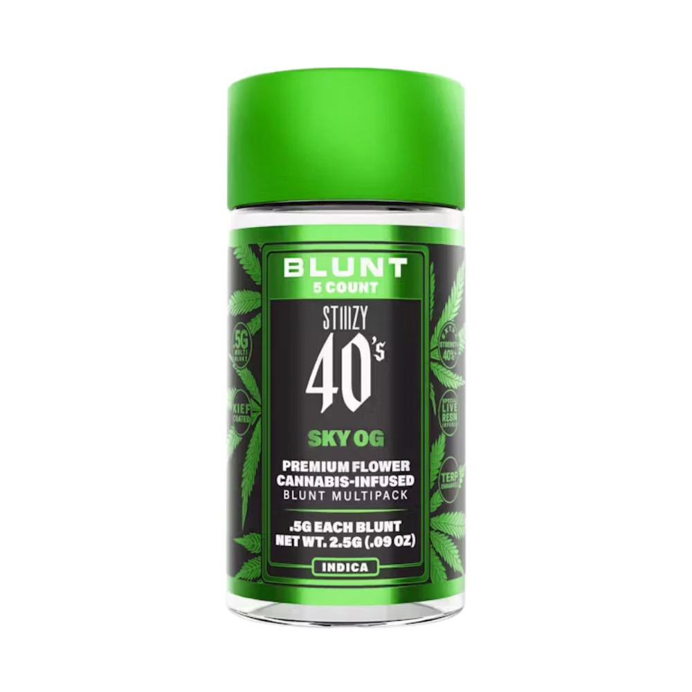 Experience the power of Skywalker OG strain in these prerolls, carefully crafted to provide a smooth and satisfying smoke. With the 40's Infused Mini Blunts 5 Pack - Skywalker OG .5g - STIIIZY, you can enjoy the benefits of this popular strain in a convenient and ready-to-use form. Visit From The Earth dispensary today to get your hands on these exceptional prerolls. **THIS ITEM IS DISCOUNTED + SOLD WITH AN OPTIONAL SEPARATE NON-CANNABIS MERCH ITEM -- IF YOU WOULD LIKE TO PURCHASE THE CANNABIS WITHOUT THE MERCH ITEM AT FULL PRICE -- PLEASE CONTACT US.**