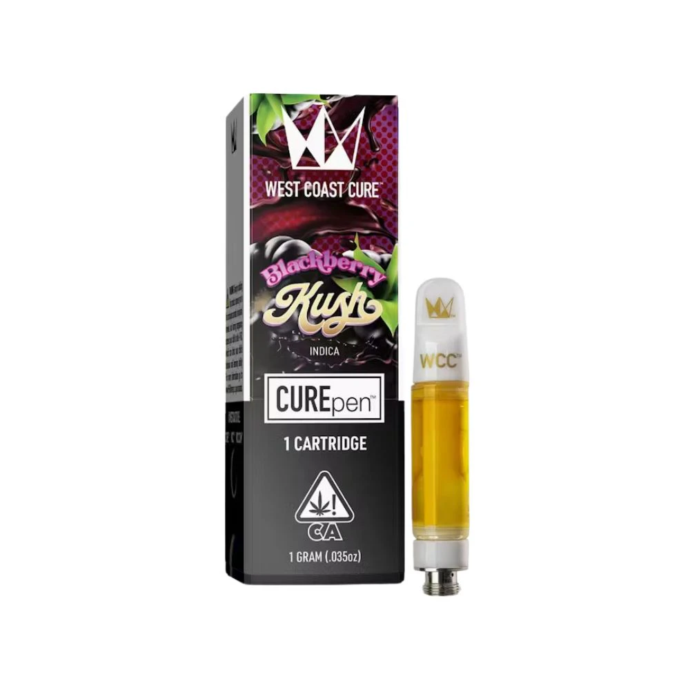 Blackberry Kush CUREpen 1G by West Coast Cure offers a rich and flavorful experience with every puff. This Indica-dominant cartridge is crafted from high-quality oil, delivering a smooth, soothing vape with each draw. The rich, fruity aroma of ripe blackberries mixes seamlessly with earthy undertones, creating a truly enjoyable flavor profile. The effects are deeply relaxing, providing a calm, tranquil high that’s perfect for unwinding after a busy day or easing into a restful night. Whether you're looking to de-stress or simply enjoy a flavorful vape, Blackberry Kush CUREpen is the ideal choice. You can conveniently pick up this cartridge at From The Earth dispensary in Port Hueneme, California, or have it delivered right to your doorstep.